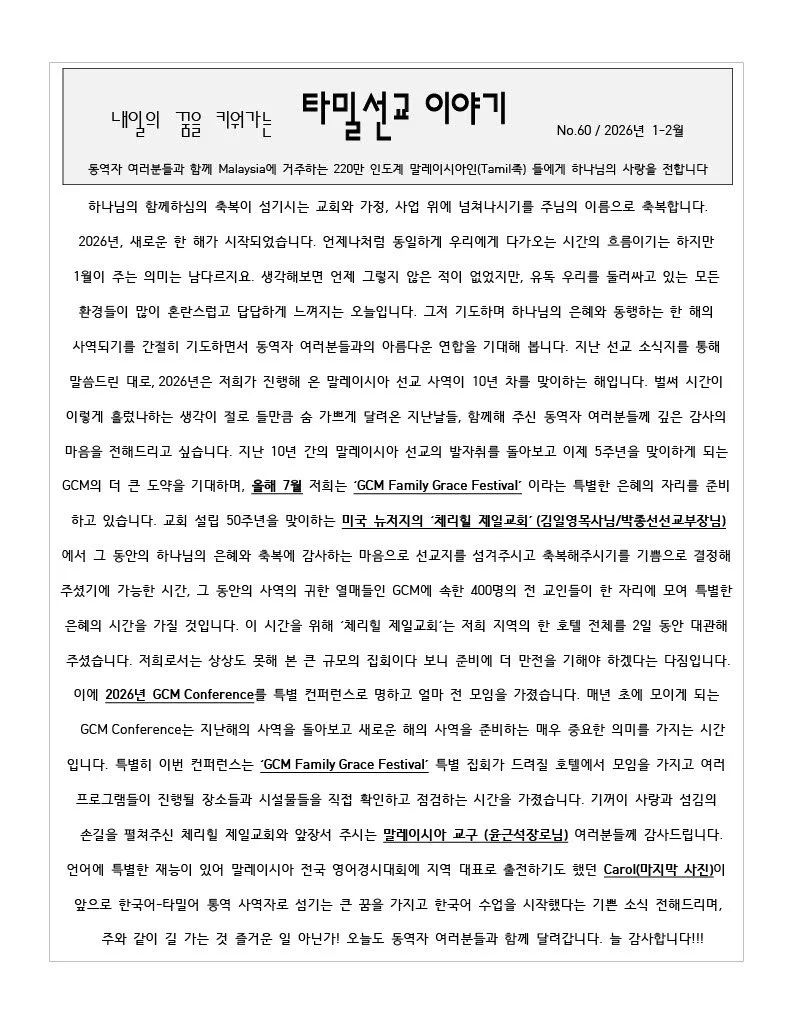 올 한 해의 사역도 잘 감당되기를 기도합니다 …
